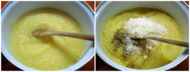 - Zakuvati palentu u vodi, pa na laganoj vatri kuvati mešajući par minuta. Začiniti solju i biberom.